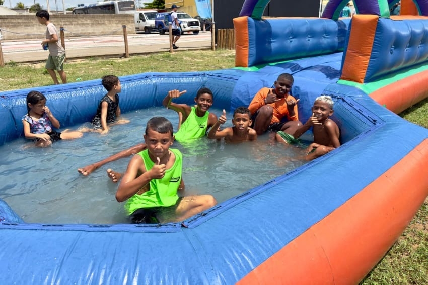 A criançada teve motivos de sobra para aproveitar o sábado (24/01) na Arena Esportiva, na praia de Santa Clara. O espaço recebeu uma programação especial voltada ao público infantil, com ponto de leitura, jogos, pula-pula e brinquedos molhados, garantindo diversão do início ao fim. O evento foi realizado pelo Sesc,