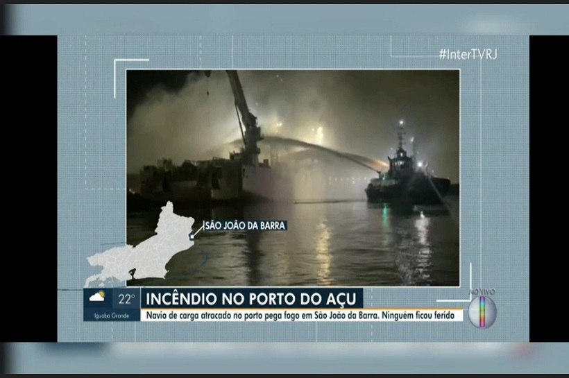 Incêndio em navio no Porto do Açú em São João da Barra-RJ. Assista ao vídeo