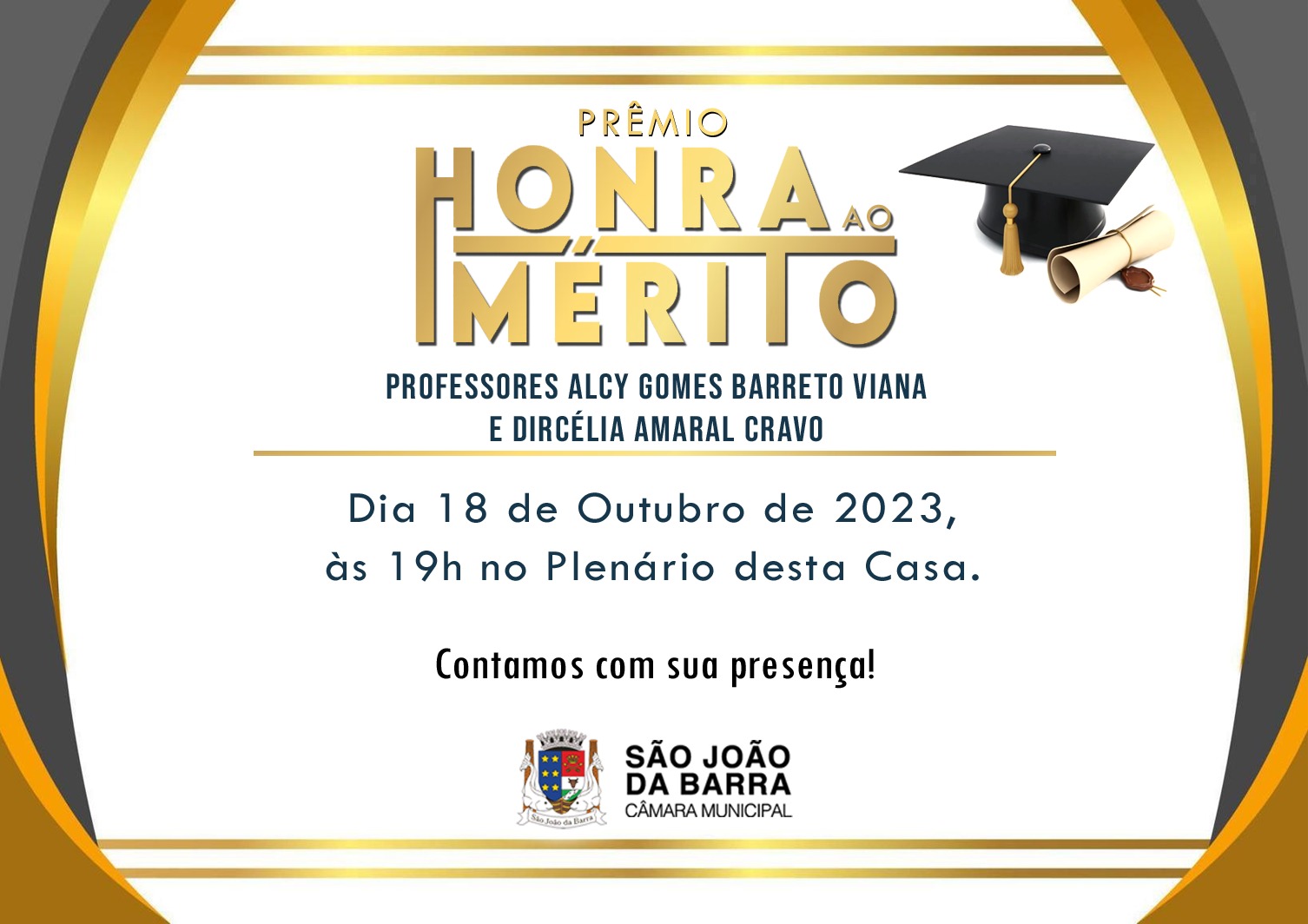 O Dia do Professor não passará em branco na Câmara de São João da Barra. A Casa vai promover, no próximo dia 25, às 19 horas, a 2ª edição do Prêmio de Honra ao Mérito Professores Alcy Gomes Barreto Viana e Dircélia Amaral Cravo. O evento acontecerá no plenário do