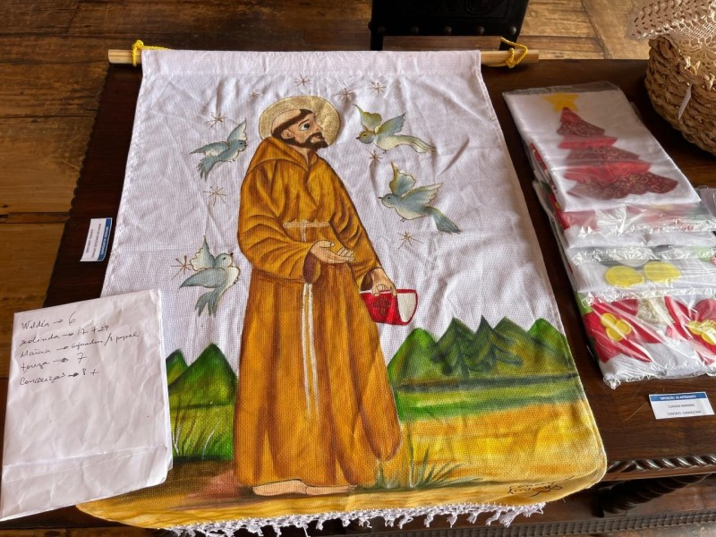 A mostra reúne trabalhos de artistas e artesãos sanjoanenses, como quadros de pintura e desenho, fotografias, esculturas, artesanato em madeira, macramê (bolsas e painéis), arranjos sustentáveis, além de peças temáticas de Natal, como presépios, árvores natalinas, porta-velas, guirlandas e outros adornos decorativos.