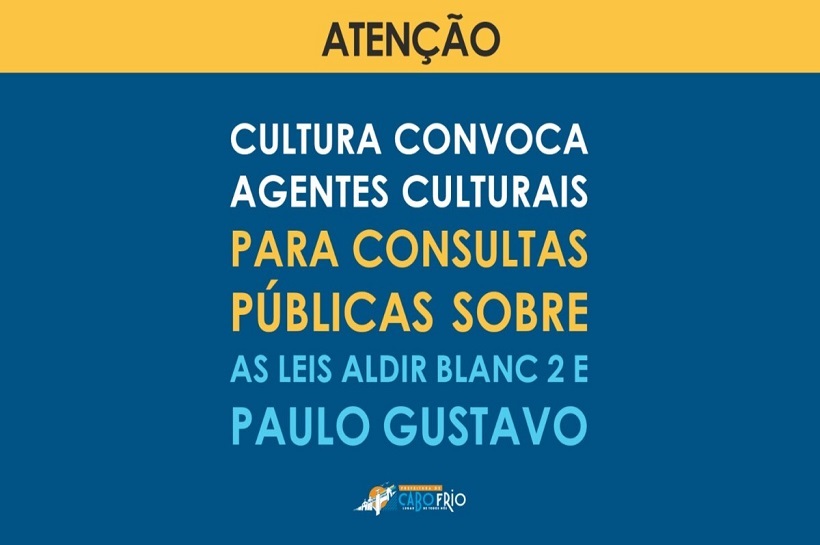 A Prefeitura de Cabo Frio, por meio da Secretaria Municipal de Cultura, está convocando todos os agentes culturais do município para participarem das consultas públicas sobre as leis Aldir Blanc 2 (LAB2) e Paulo Gustavo (LPG). As reuniões serão realizadas nos dias 17 e 18 de maio, às 18h, em Cabo Frio e Tamoios, respectivamente. O objetivo é ouvir os fazedores de cultura do município sobre a aplicação dos recursos das leis.