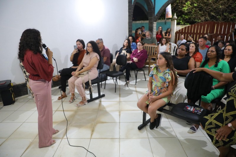 Promovido dentro da política de descentralizar a cultura no município, o sarau iniciou com apresentação do Coral Irmãs Alves, cantando um louvor. Seguiu com apresentação da cantora Mere Alves, com a canção “Aceita-me como sou!”, e seguiu com apresentação da cantora-mirim Esther Machado. Aluna de teatro da casa, ela cantou numa acapella a canção “O maior vilão sou eu!”