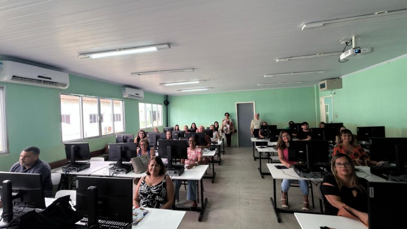 A formação foi conduzida pelas coordenadoras municipais da Educação, Andréa Fernandes, responsável pelo Sistema Presença, e Fabilma Menezes, do Setor de Gestão de Programas e Sistemas Federais.