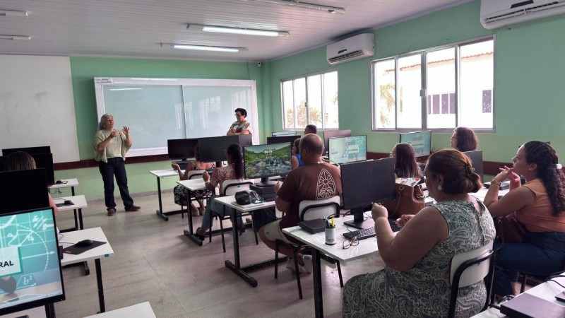 A formação foi conduzida pelas coordenadoras municipais da Educação, Andréa Fernandes, responsável pelo Sistema Presença, e Fabilma Menezes, do Setor de Gestão de Programas e Sistemas Federais.