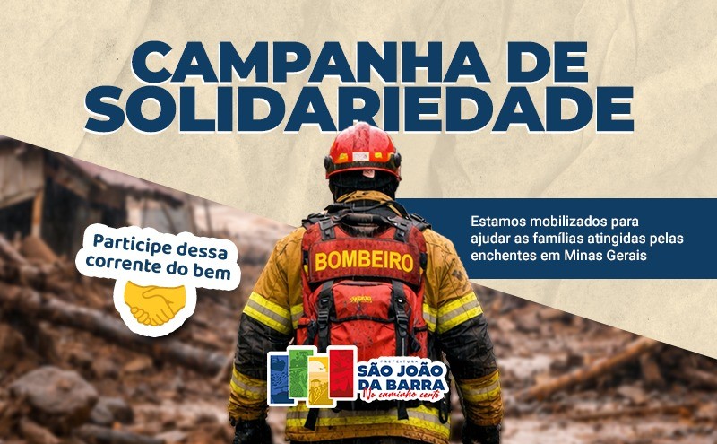 São João da Barra aderiu à corrente de solidariedade em favor das vítimas das enchentes no estado de Minas Gerais com o anúncio pela prefeita Carla Caputi, nesta sexta-feira, 27, de uma campanha de arrecadação. Água mineral, alimentos não perecíveis, cobertores, roupas e material de limpeza e de higiene pessoal podem ser entregues na Defesa Civil Municipal, todos os dias 24h, ou em uma das seis unidades do Centro de Referência de Assistência Social (Cras), de segunda a sexta-feira, das 8h às 17h.