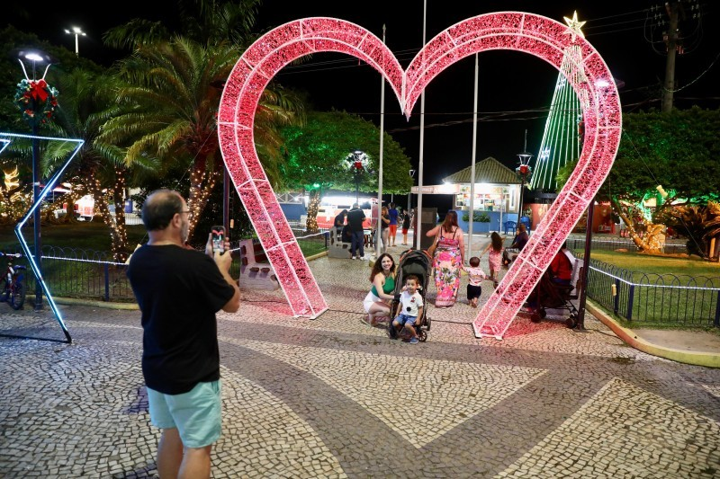 A decoração natalina foi outro destaque à parte. Árvore gigante, túnel de estrelas, presépio, trenó com renas em tamanho natural e a Casa do Papai Noel criaram um percurso de encantamento que convidava moradores e turistas a caminhar, fotografar e permanecer. Mais do que decoração, a iluminação especial ascendeu o clima de celebração.